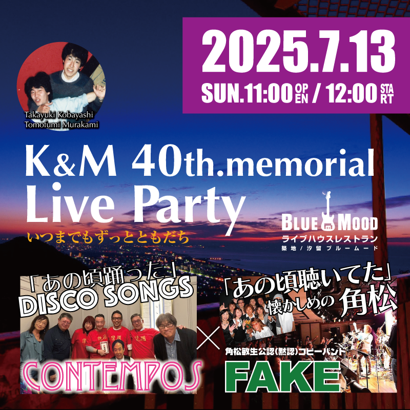 角松敏生のトリビュート・バンド。 立教大学RFCのメンバーに、二人が在籍していたロングフェローの木村が加わり1986年に結成、来年40周年! 角松氏がLIVEに訪れるなど、親交があるのをいいことに「公認」を名乗っている。 このLIVEでは村上が愛してやまなかった「あの頃の」角松敏生の楽曲から厳選し てお届けします!